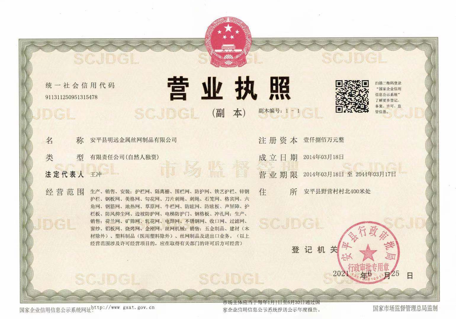 安平縣明遠(yuǎn)金屬絲網(wǎng)制品有限公司 - 座落于絲網(wǎng)產(chǎn)業(yè)基地河北安平,二十年絲網(wǎng)制作經(jīng)驗(yàn),是一家從拔絲、焊接、打砂、折彎、鍍鋅、噴塑、浸塑、為成品,生產(chǎn)研發(fā)安裝為一體的交通工程護(hù)欄網(wǎng)、光伏景區(qū)圍欄網(wǎng)專業(yè)型企業(yè)。明遠(yuǎn)公司擁有先進(jìn)的生產(chǎn)設(shè)備,全自動(dòng)浸塑、噴塑、鍍鋅生產(chǎn)線,電腦焊網(wǎng)機(jī)組,聯(lián)合壓力機(jī),數(shù)控折彎機(jī),槍尖沖孔機(jī)等多臺(tái)輔助設(shè)備,具有大批量生產(chǎn)能力。